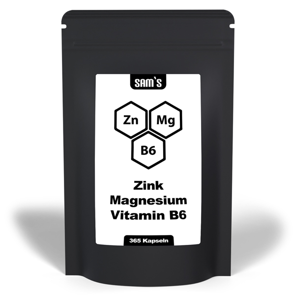 Magnesiumoxid, Zinkoxid, Vitamin B6, pflanzliche Kapselhülle (Hydroxypropylmethylcellulose), pflanzliches Öl, Trennmittel (Siliciumdioxid).